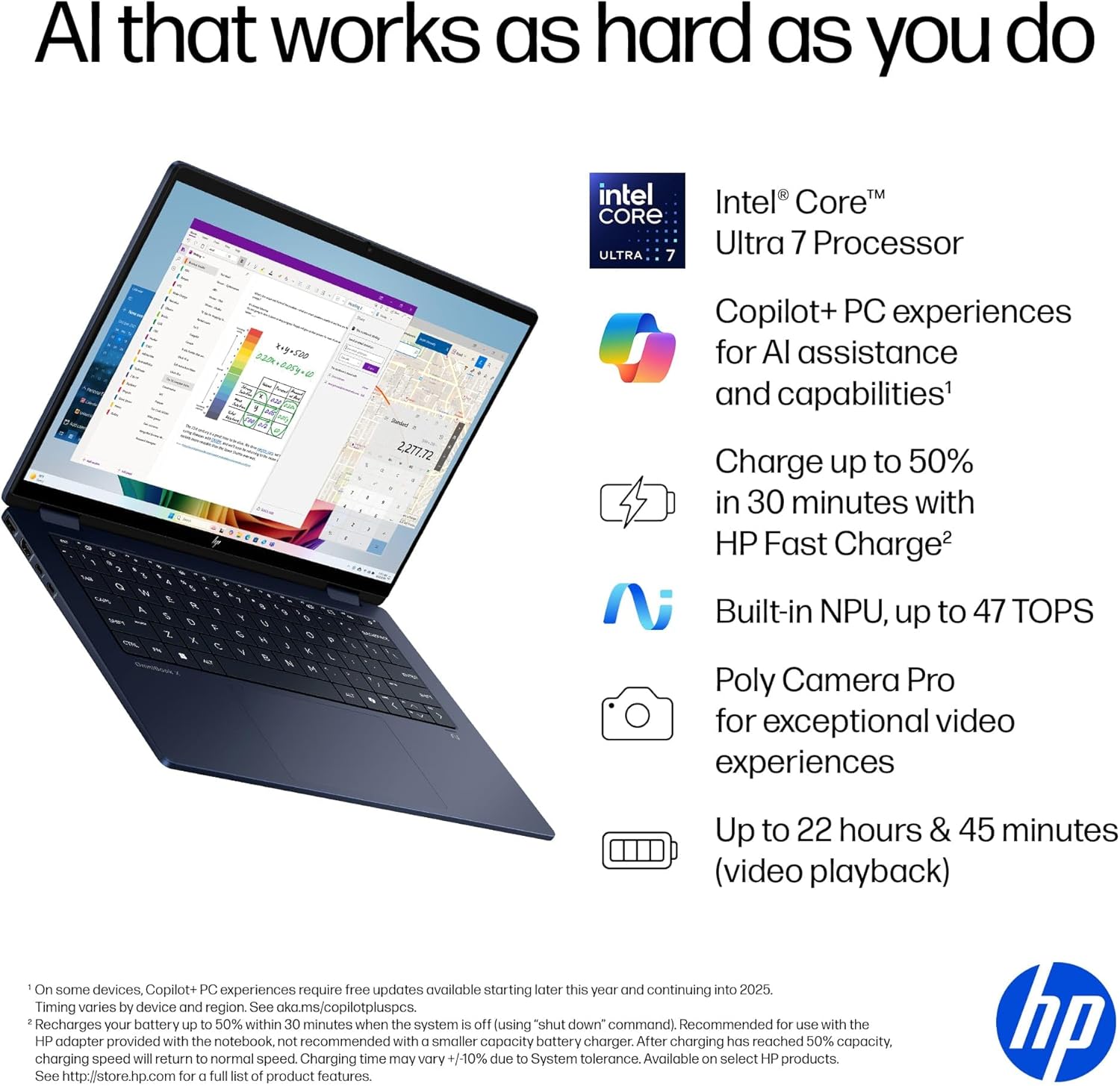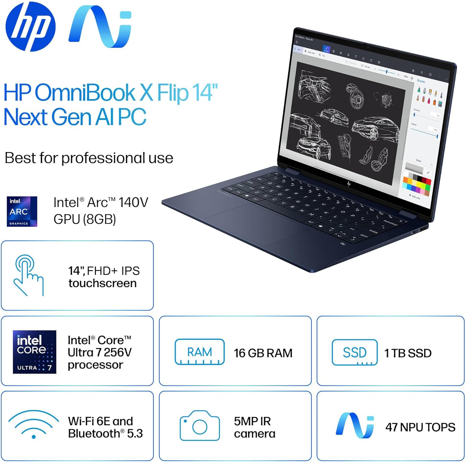Ordinateur PC HP Omnibook X Flip 14-Fm0023dx Intel Core Ultra 7 256v 16gb 1000Go Ssd x360 Touchscreen Backlite Keyboard Win11 14″ Blue, Prix : 650.000FCFA Benin|Cotonou