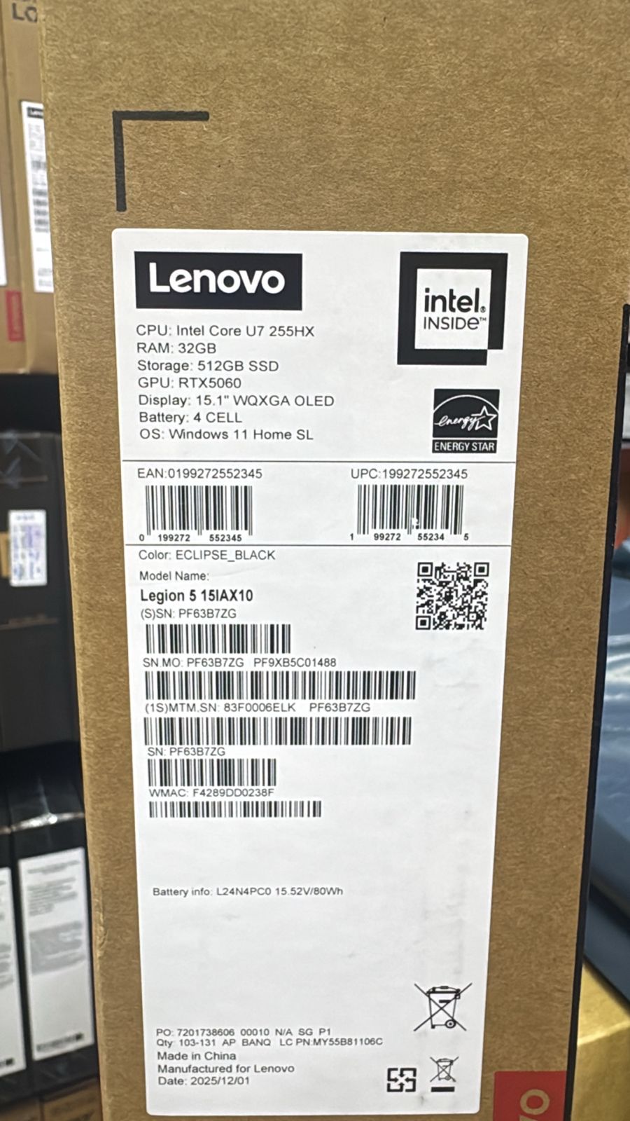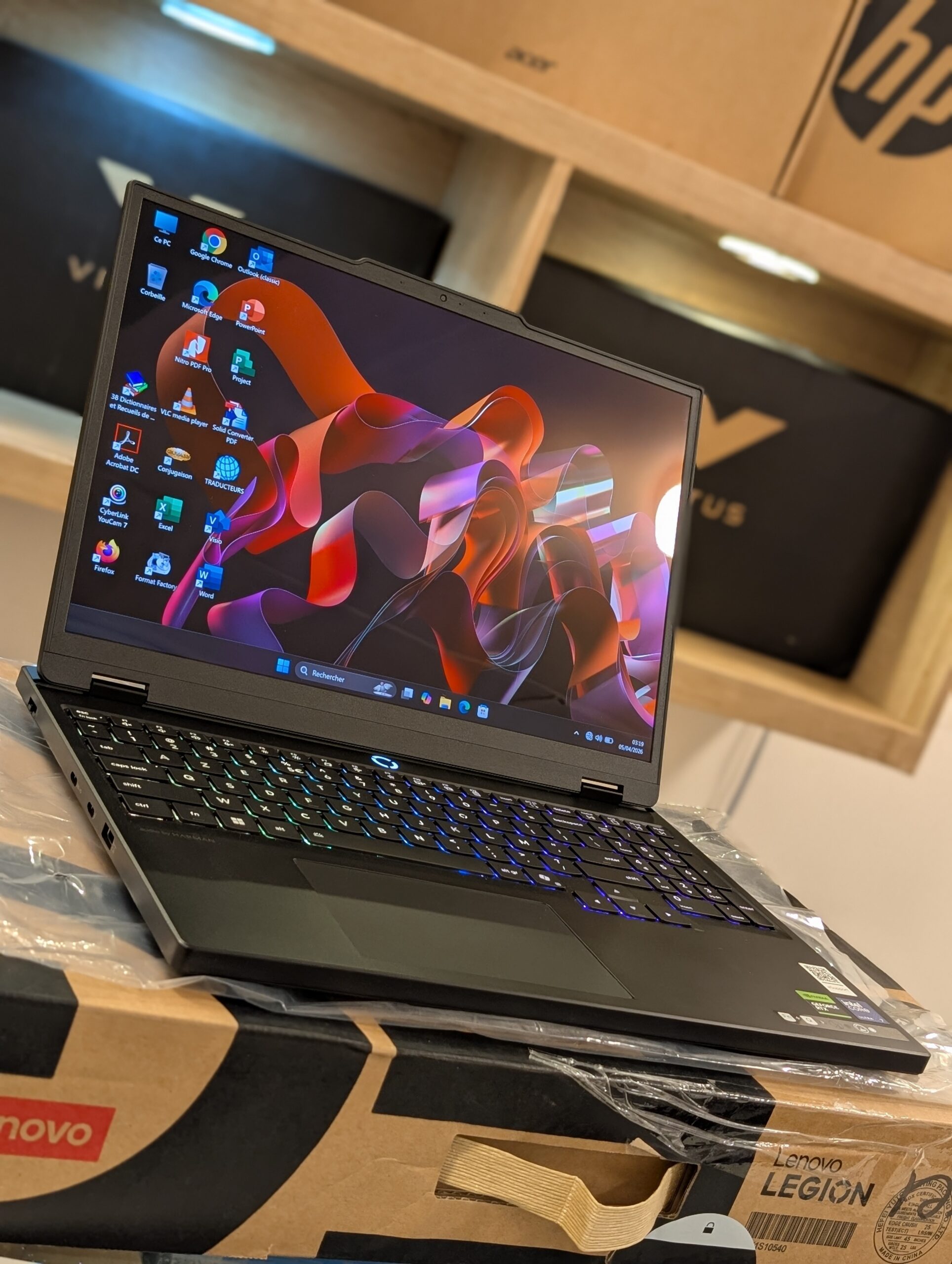 Ordinateur PC Gamer Legion 5 15IAX10 Gaming Laptop Intel Core Ultra 7 255HX Processor 32GB DDR5 Ram | 512GB PCIe SSD Nvidia®️ GeForce®️ RTX 5060 8GB Graphic Card 15.1″ WQXGA (2560×1600) OLED glossy 165Hz Display Windows 11 Home | 24-Zone RGB Backlit English Keyboard Eclipse Black Color | 1 Year Warranty Brand New Prix : 1.195.000fcfa Benin|Cotonou
